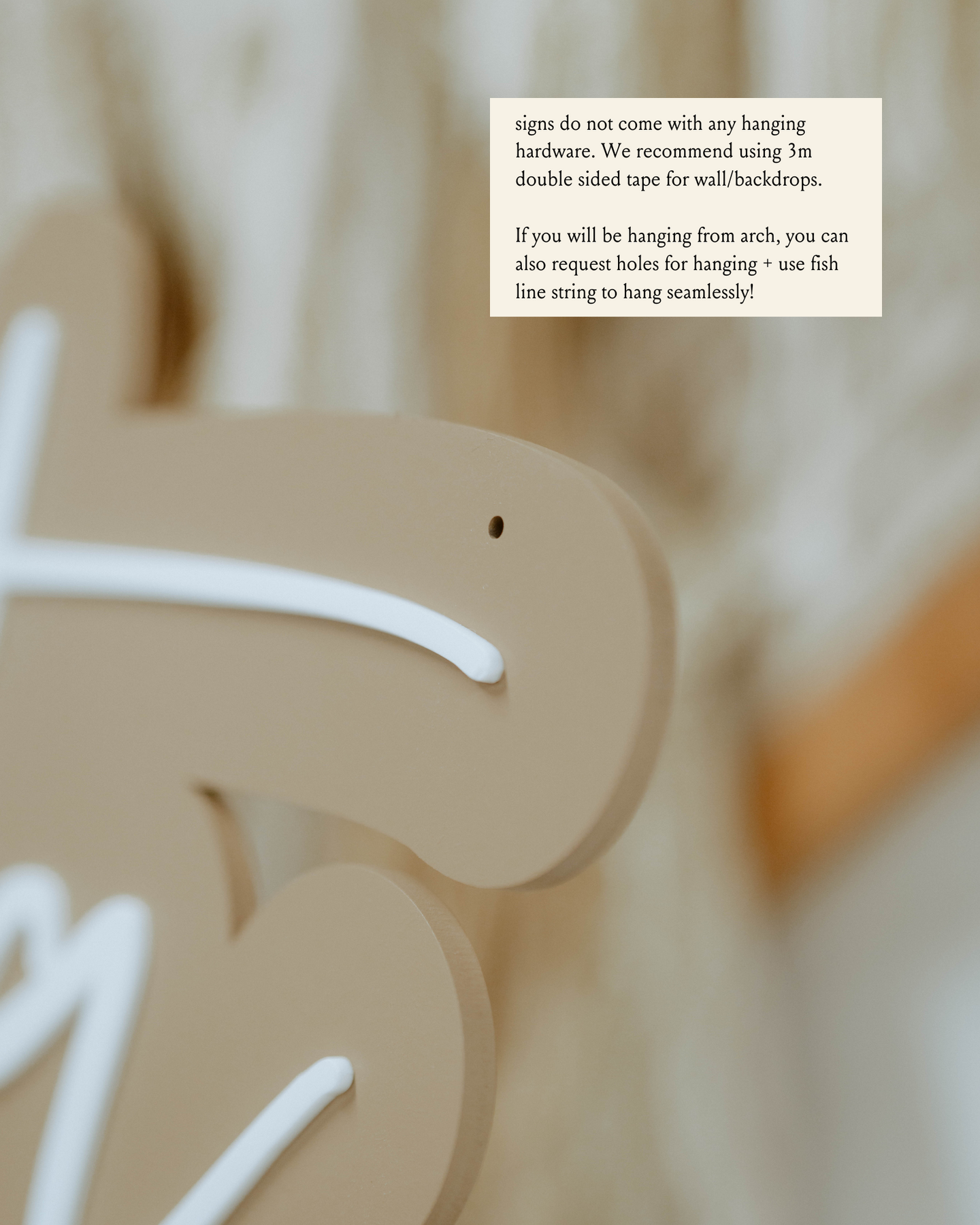 - Choose between no holes (best if you want to hang using 3m tape), holes for hanging (best if you would like to permanently install to your wall with screws - we recommend adding standoff screws for a polished look - add-on available).