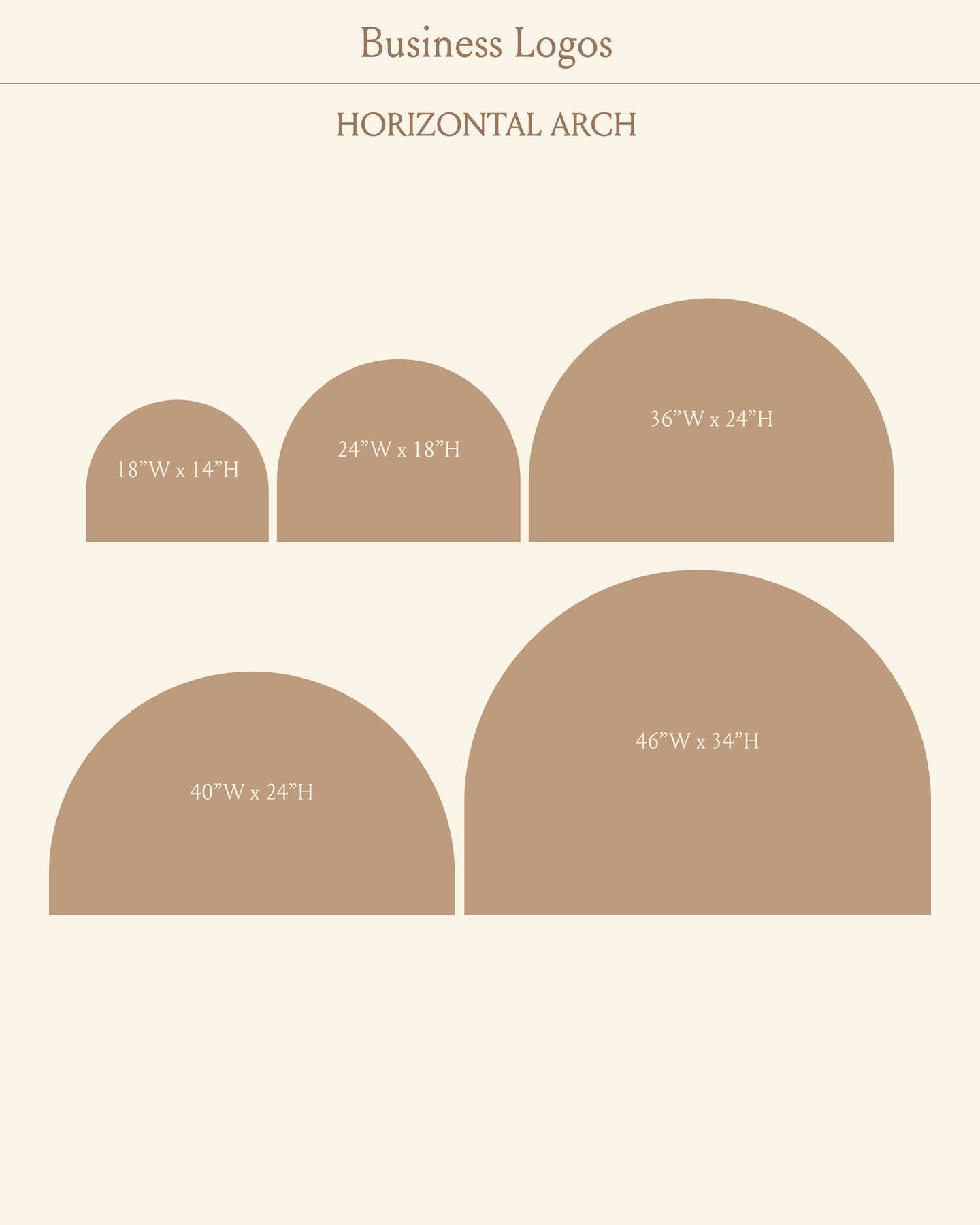 This arch shaped business logo sign is the perfect way to make a statement and stand out from the competition. With an array of sizes and materials available, you can customize your logo sign to fit your own unique style. Whether you’re looking to make a statement in your store, market, or home office, this sign is sure to grab attention and leave a lasting impression.