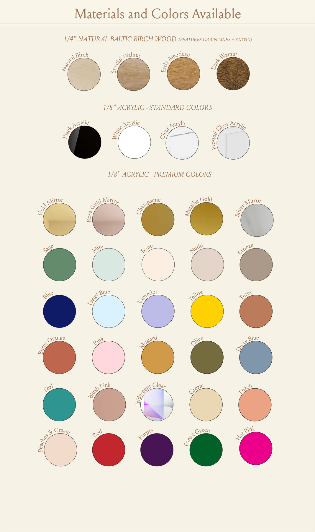Lettering Options: Natural Birch, Stained, Painted, and Acrylic Options